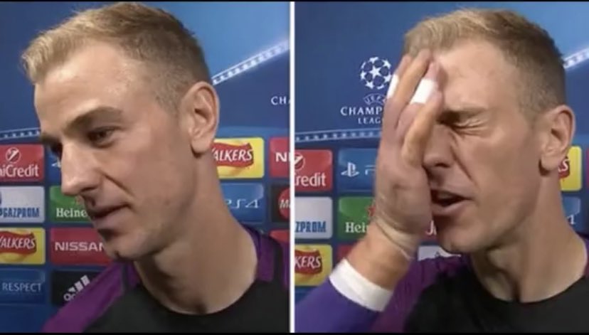 وكانت مباراة المان سيتي امام نادي برشلونه الاسباني 🇪🇸في دوري الابطال موسم 2015 هي افضل مباراة قدمها الحارس جو هارت💙 في مسيرته :