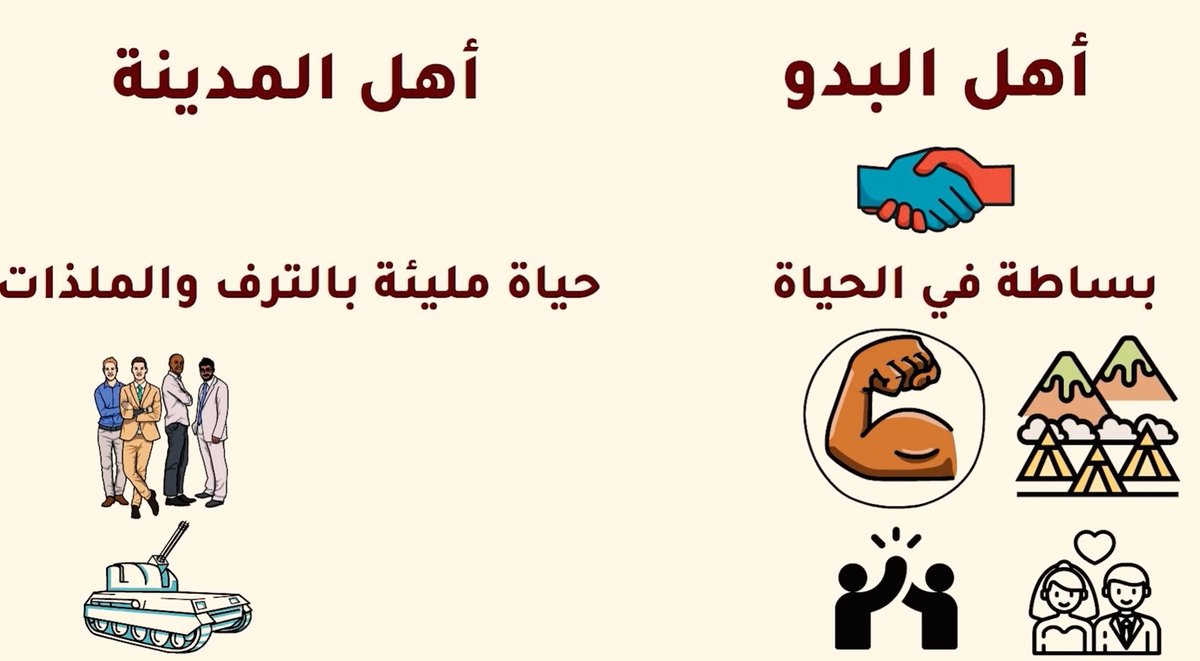 1️⃣ البدو: البساطة، اهتمامات متواضعة، أكثر خيرا، شجاعة، أكثر تصادم، أكثر دفاعا عن بعضهم بعضا