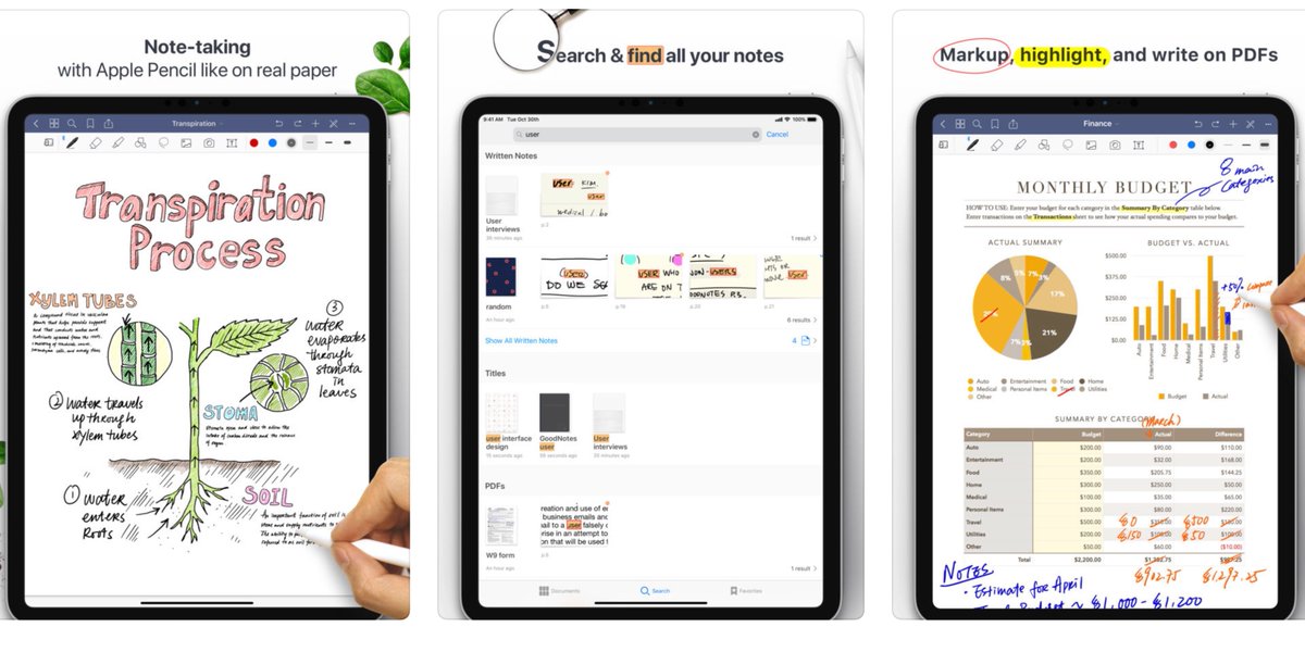 خذيت جهاز أيباد وبديت البحث عن أفضل تطبيقات notes taking وطبعا متوفرة بشكل كبير منها المجاني ومنها المدفوع وتدعم apple pencil ولكن كان في تطبيقين مشهورين بشكل كبير