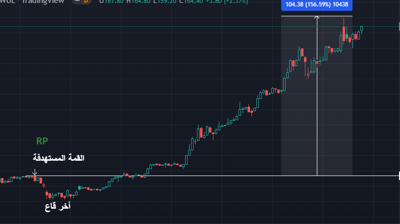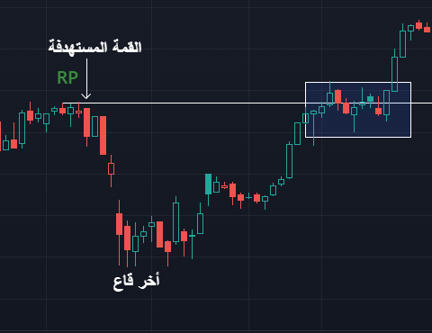 من هنا تبدأ كمستثمر ترى أخر قمة تشكلت قبل القاع الأخير وتسمى "نقطة الانعكاس" او مختصر RP