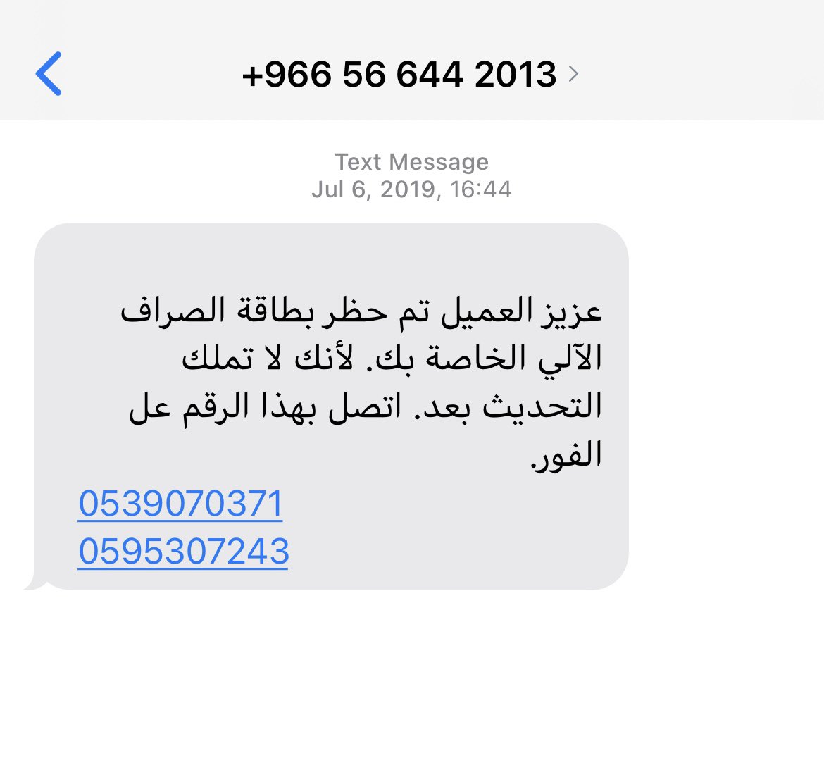 • رسائل نصية / اتصالات من محتالين للحصول على معلوماتك البنكية