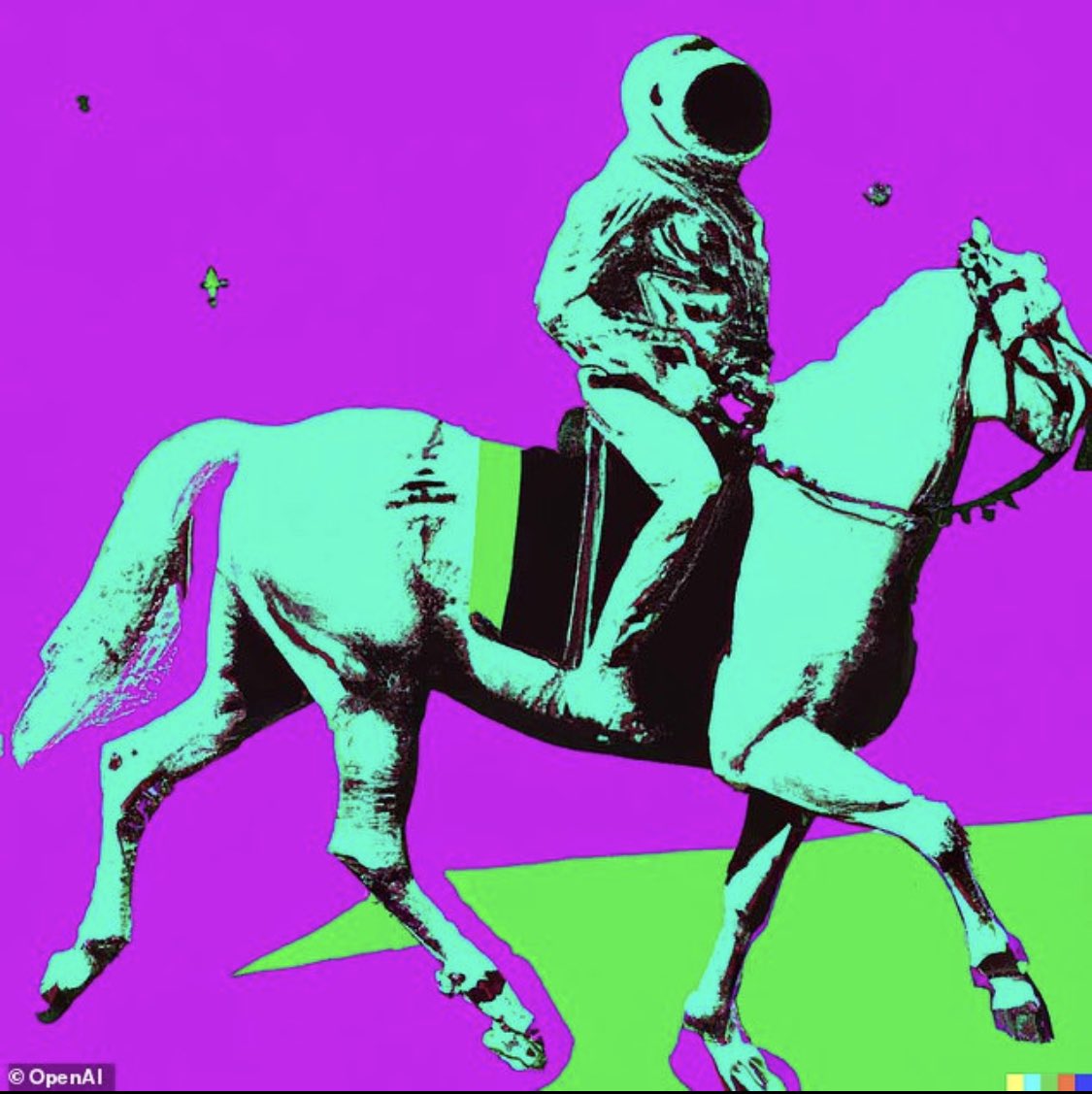 ابتكرت منظمة OpenAIالأمريكية نظام DALL-E يمكنه أن ينتج صورًا من البداية بناءً على ما تطلبه،أي بمعنى عندما يصدر منك موجة صوتية سوف يقوم الذكاء الصناعي برسم ما تقوله بدقة عالية وبوقت قصير مثل رائد فضاء يركب حصان،سوف تقوم المنظمة بفرض قيود لعدم نشر العنصرية