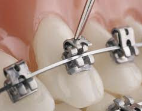 هذا النوع الأكثر شيوعا” واستخداما” ما بين الأطفال والمراهقين، ويتم بوضع هذه الحاصرات المعدنيه على الأسنان ويتم ربط السلك في هذه الحاصرات بواسطة اربطة مرنة متعددة الألوان يتم اختيار اللون بواسطة المراجع، وتتم الزياره لدى اخصائي تقويم الأسنان كل ٤-٦ اسابيع ليتم التعديل او التغيير