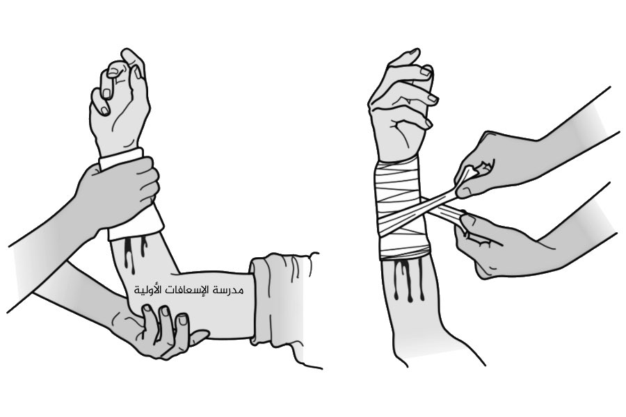 ⚠️ 3/ في حال امتلأت القطة القماشية بالدم ، (لا تشيلها ) و لكن جيب قطعة قماشية ثانية و حطها فوقها وواصل الضغط .