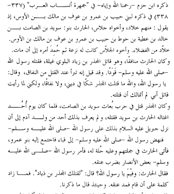 كان من شيوخ الأوس الذين قتلوا يوم بعاث "سويد بن الصامت بن خالد بن عطية.. الشاعر، قتله المجذر بن ذياد البلوي في الجاهلية فوثب ابنه الجلاس بن سويد على المجذر فقتله غيله في الإسلام، فقتله رسول الله قوداً، فكان أول من أُقيد في الاسلام .." نسب معد واليمن الكبير (1/374) للكلبي ت 204 هـ