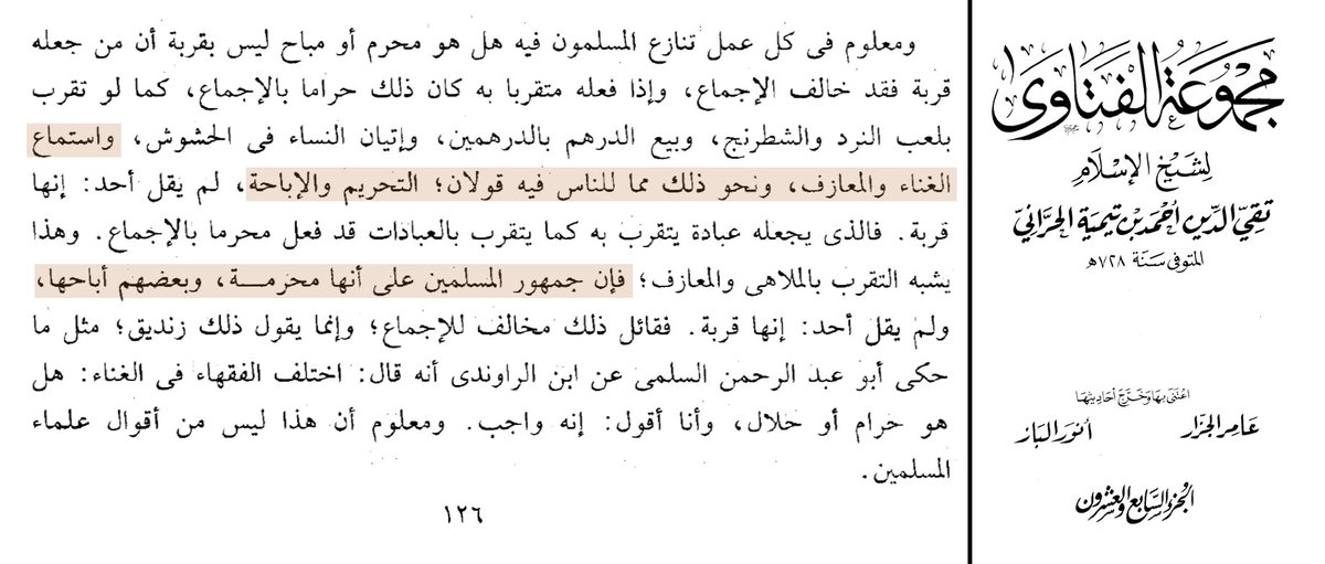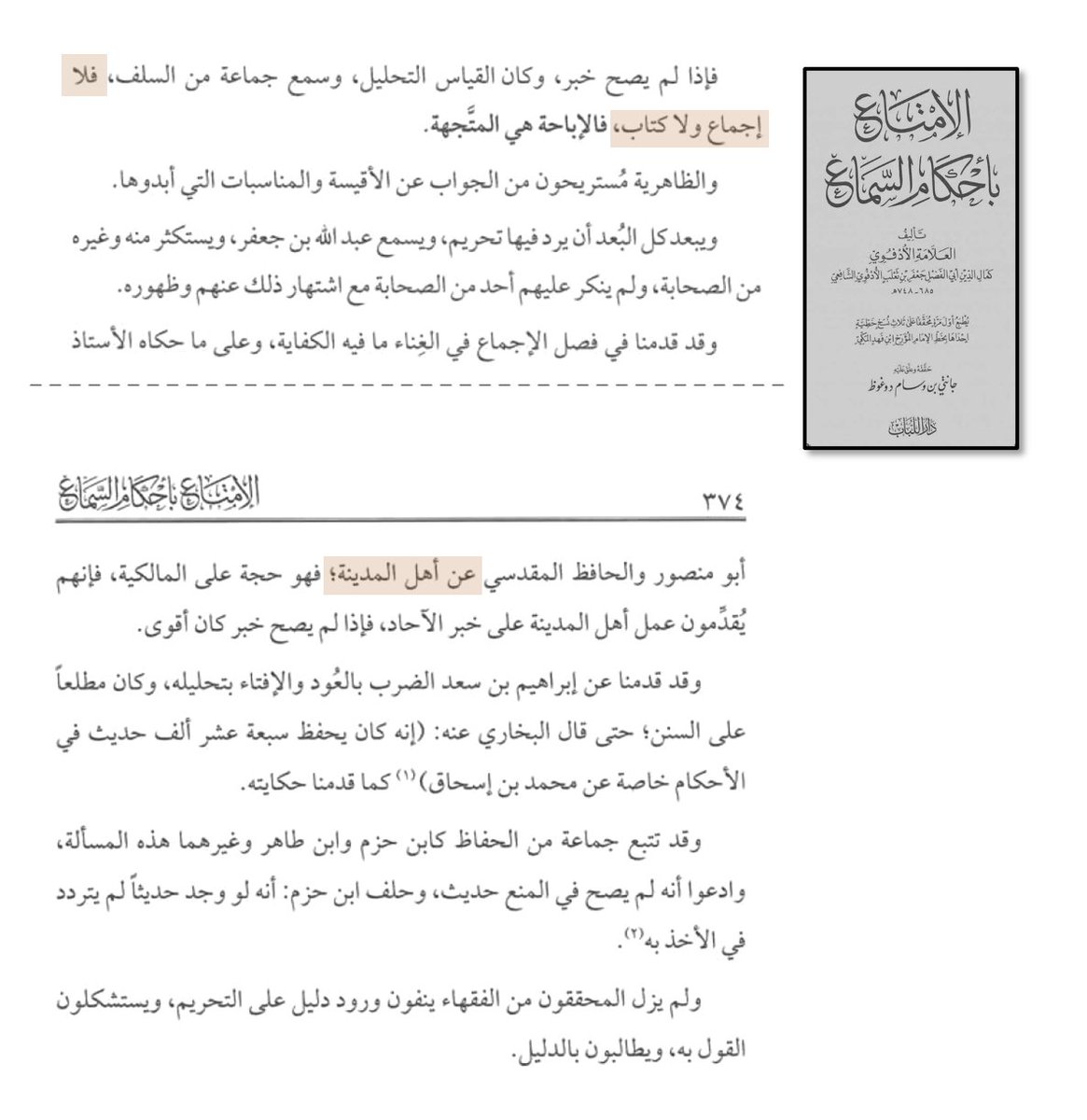 ومعظم المذكورين في هذه السلسلة قالوا بتحريم المعازف ، ولكن كان لديهم من العلم والورع ما يحول بينهم وبين ادعاء إجماع لا وجود له