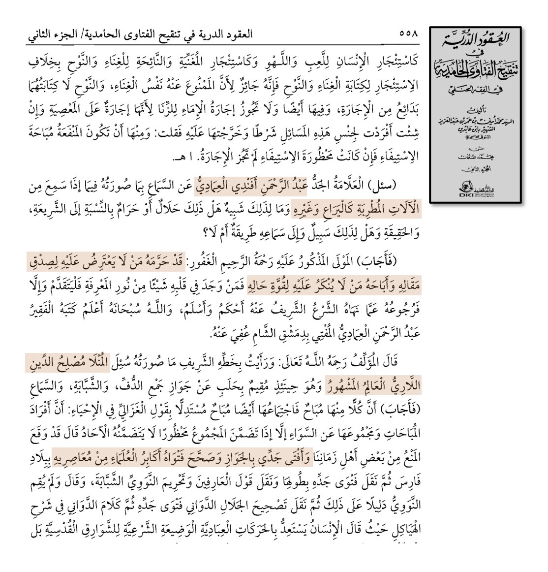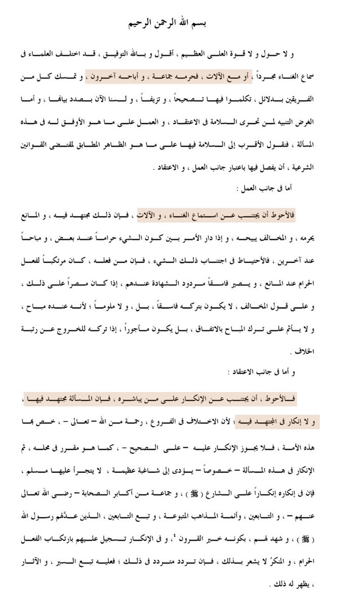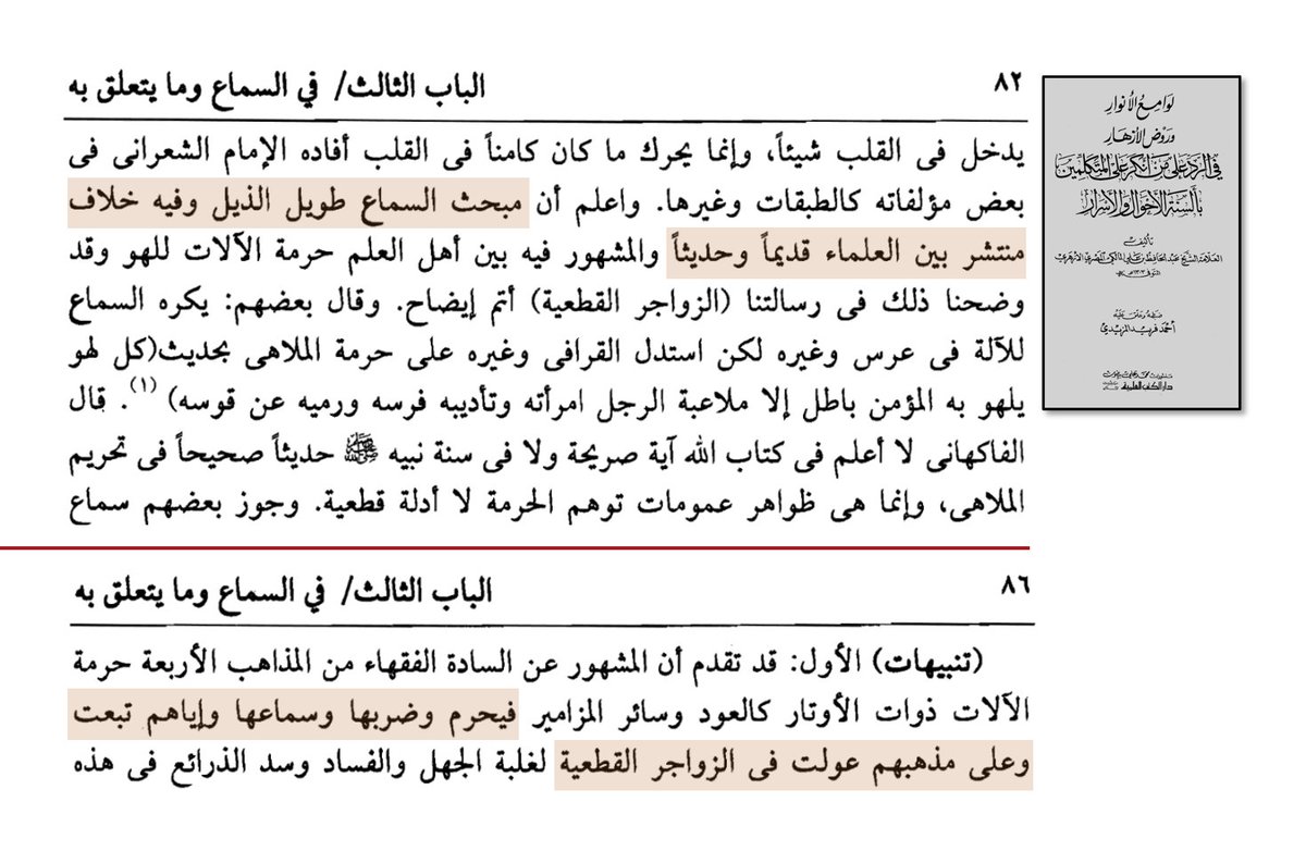 ذهب جمع غفير من فقهاء الإسلام إلى أن المعازف مسألة خلافية ليس فيها إجماع