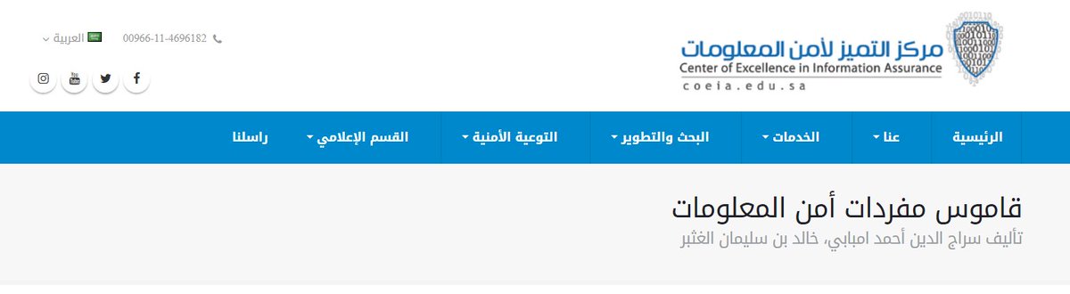 3⃣ قاموس مفردات أمن المعلومات المقدم من مركز التميز التابع لجامعة الملك سعود.