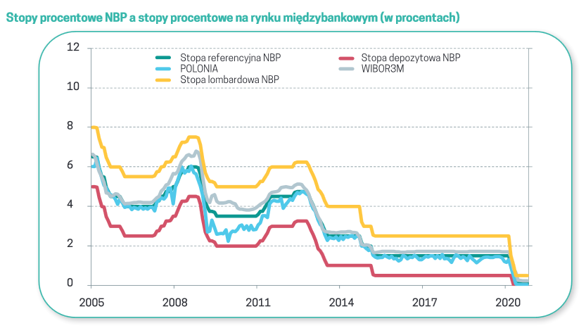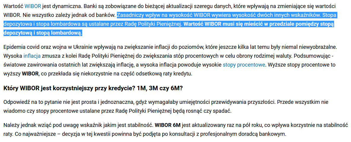 10a. Doszło do absurdalnej sytuacji. Rada Polityki Pieniężnej przestała decydować o ramach procentowych, w jakich musi znaleźć się wskaźnik WIBOR (do 2021 roku zawsze ten wskaźnik mieścił się między stopą depozytową a lombardową).
