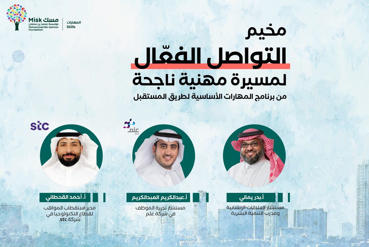 فرصة لتبدأ رحلتك المهنية عبر أول مخيم تدريبي لبرنامج المهارات الأساسية لطريق المستقبل: التواصل الفعّال لمسيرة مهنية ناجحة.. والمقدم من #مؤسسة_مسك.