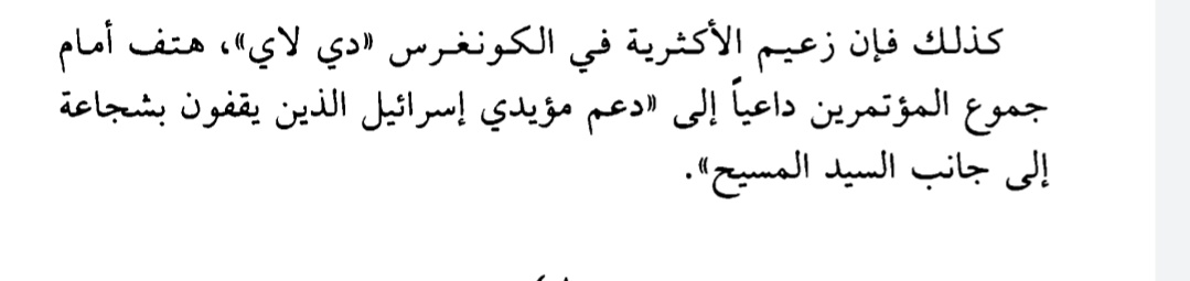 ثم جاء عضو الكونغرس الجمهوري توماس ديلاي الذي دعا إلى دعم مؤيدي إسرائيل الذي يقفون بكل شجاعة إىى جانب المسيح!!! 🤔