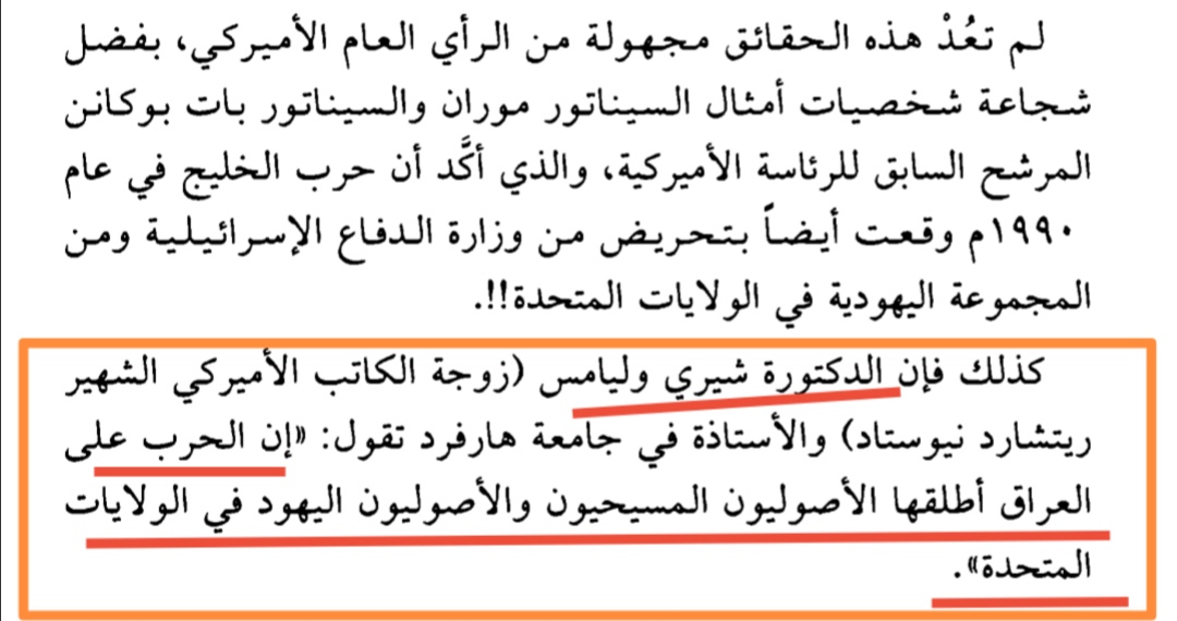 وبمثل هذا قالت الدكتورة البريطانية شيري وليامز:(إن الحرب على العراق أطلقها الأصوليون المسيحيون واليهود في الولايات المتحدة الأمريكية) #مكبرات_الصلاه_مطلبنا