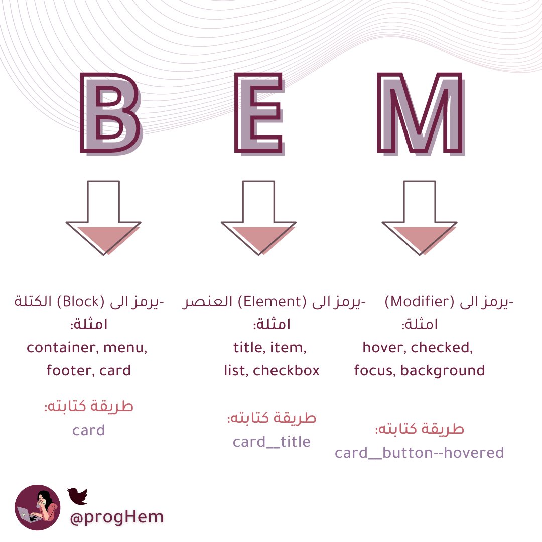هي اختصار لـ Block Element Modifier، وتعتبر احد انواع المنهجيات المستخدمة لكتابة اكواد الـ CSS ، (مما يعني وجود انواع اخرى غيرها )