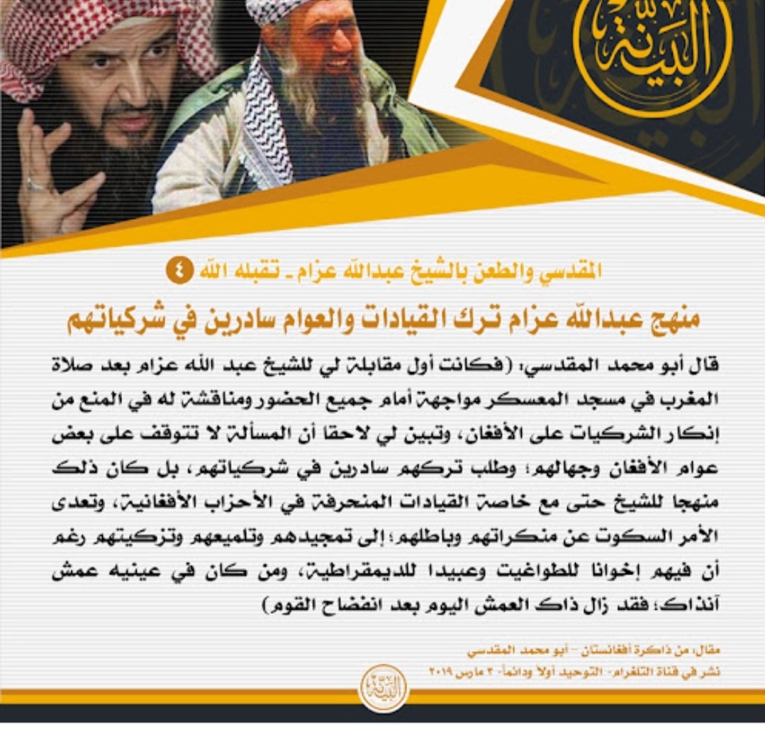 ويكفي المقدسي خزيا وعاراً أنه كان في ساحة جهاد؛ فخرج منها وولى هارباً، ثم تخصص في التنظيرات والمزاودة والطعن في المجاهدين، فلم تسلم منه ساحة