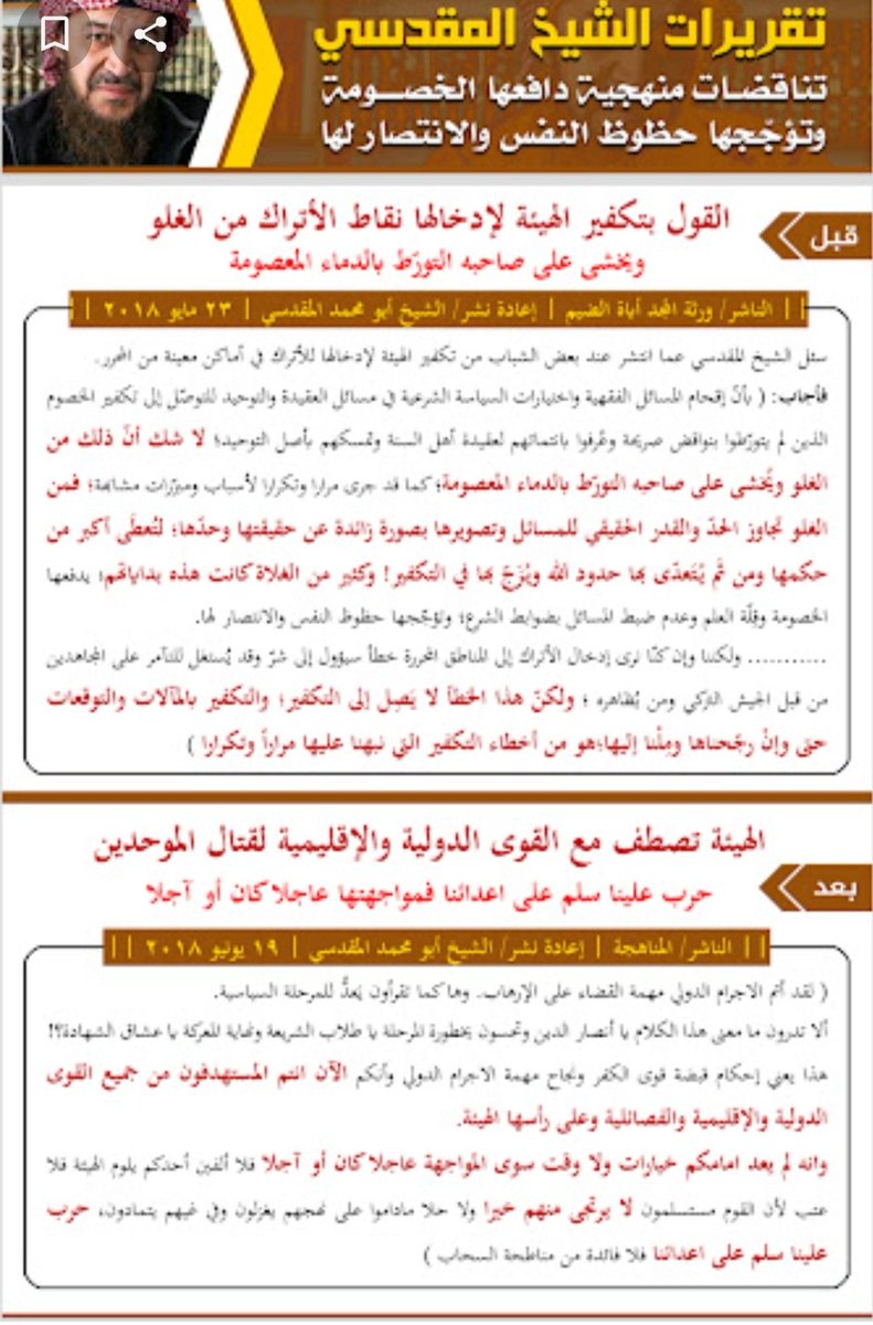 قال الخارجي المقدسي في بعض كتبه التي كفر فيها دولة التوحيد