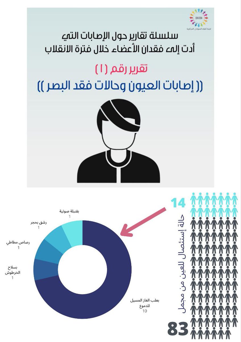 احتمالية فقدان البصر بشكل مستديم. معظم الإصابات للعيون نتجت عن التصويب المباشر لعبوات الغاز المسيل للدموع نحو العين، كما حصرنا أيضاً إصابات نتيجة الرشق بالحجارة والإصابة برصاص مطاطي وطلق ناري مرجح أنه بسلاح خرطوش.