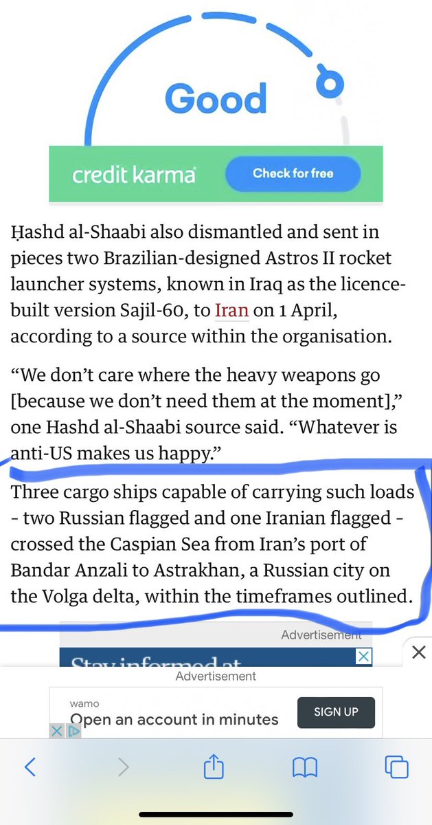 وبالتالي المصدر الرسمي العراقي لا ينفي تهمة اختراق العقوبات الدولية بل يؤكدها فالمصدر بتصريحه السطحي كأنما يقول نحن لا نهرب السلاح بل نستورده والتقرير اساساً قائم على فكرة خطورة ان تخترق الدول العقوبات الغربية على الترسانة التسليحية لروسيا 14