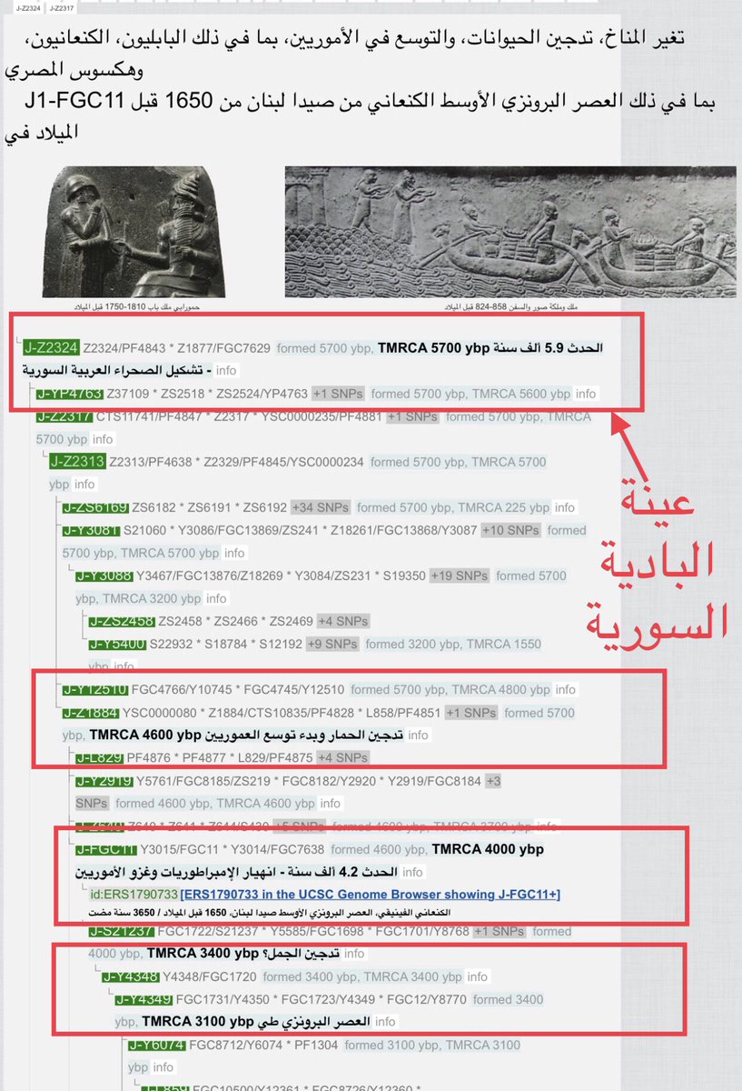 وهناك جدوال لرفات اكثر ببلاد الشام لم انشرها👇التحورات المستوطنة ببلاد الشام برفات متوالد بتحورات تنازلية عمراً من الاف السنين ويتفرع منها الاحياء اليوم بنفس الجغرافيا واي عينة هاجر اصحابها في اصقاع الارض فأجدادها هنا👇وهي مثل الحصاة التي جرفها السيل بعيداً عن الجيل الذي خرجت منه