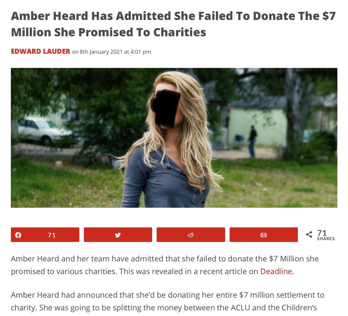 في مقالها ما ذكرت اسم جوني ديب بشكل صريح، لكن واضح وضوح الشمس انها تقصده وتقصد ادعائها انه كان يضربها ويعنفها.
