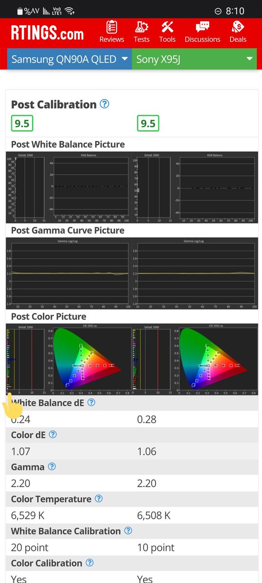 @Salah_Taylor1 وهنا قبل المعايرة كا معدل خطأ للألوان السامسونج كانت اقل بالأخضر والأحمر وبالمجموع الكلي كا متوسط خطأ مقارنة ب X95J