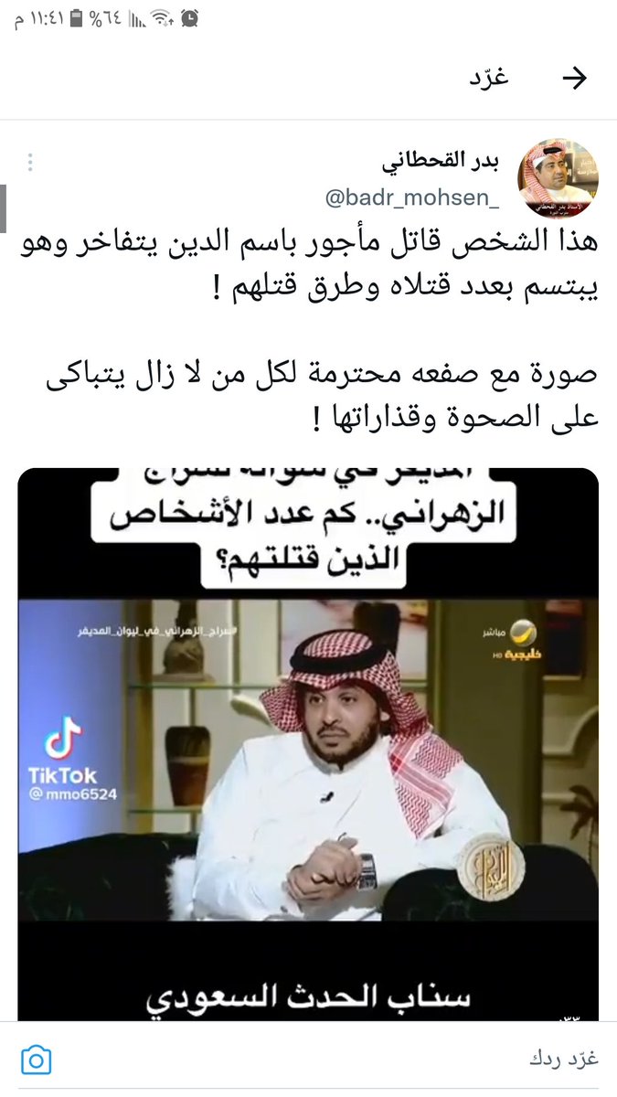 وأما ما أشار إليه الكاتب من استغرابه القتل والقطع والذبح في الساحة فهذا مبني علي جهله أو تجاهله موضوع الجهاد والقتال في سبيل الله الذي يحتوي علي قتل الكفار وضرب الرقاب كما ورد في قوله تعالى ( فاضربوا فوق الأعناق واضربوا منهم كل بنان...) ومافعله