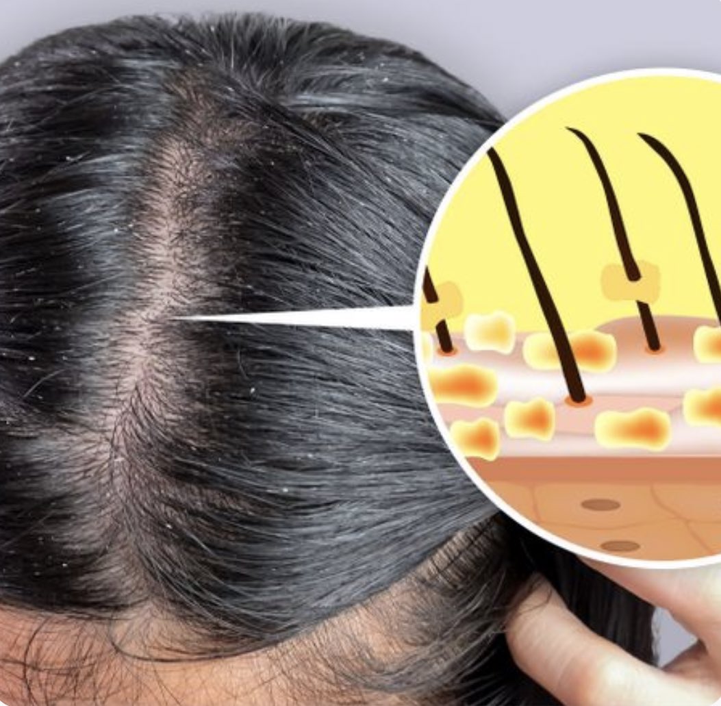 القشرة الدهنية: وتكون في شكل صفائح على اطراف الشعر، وعند الإمساك بها تشعر بالدهون المحتوية عليها. وأرجع العلماء أسباب حدوثها الى زيادة في افرازات الغدد الدهنية، أو بسبب نوع من الفطريات يسمى (pytiriasis) النُّخَالِيَّة