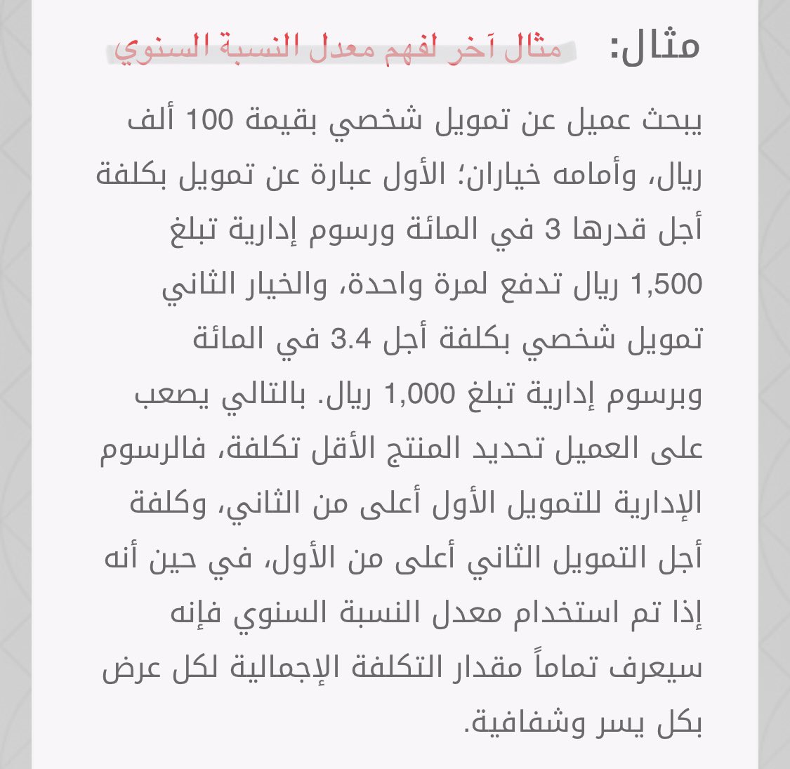 لذا، اذا كانت نسبة الفائدة في بنك أقل من بنك آخر لا تعني انه الحل الأنسب