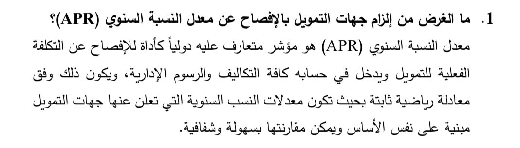 والتي هدفت على الزام البنوك وشركات التمويل على الشفافية والافصاح عن معدل الفائدة السنوي APR