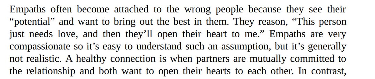 شئ -اذكر نفسي واياكم بيه - هو كونك شخص مفرط الحساسية دا بيخليك اكثر عرضة لل traumatic relationship experience ويخليك الشخص اللي need fixing دا (فيه جزء ف الكتاب بيتكلم عن الحتة ديه برده) ودا للاسف وقعة كدة صعب تطلع منها وتتعافى منها ١١