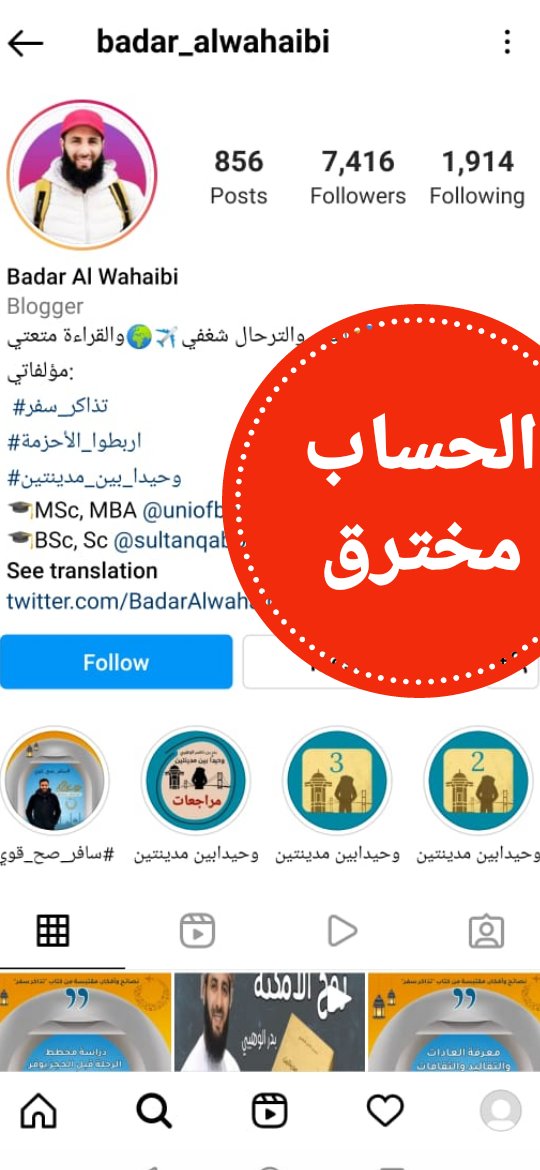 بعد تواصلي مع المكتبة اتضح فعلا أن حسابهم مخترق، وأن صفحتهم في الإنستجرام تم حذف المتابعين منها وحذف كل المنشورات
