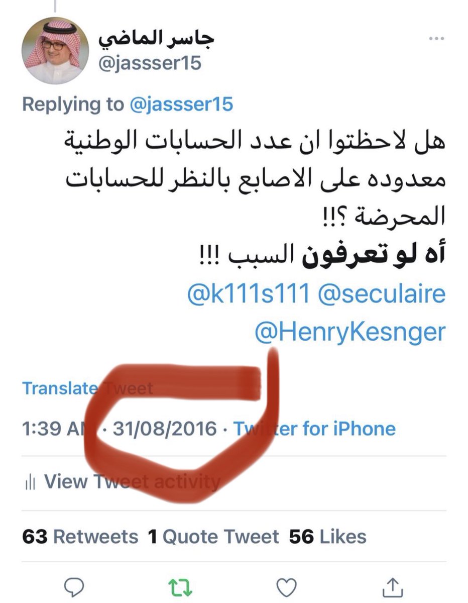 والمجندون إن بدلوا ثيابهم لايعني انهم بدلوا مافي صدورهم وعقولهم اما الحسابات الوطنية المجهولة والمشهورة والتي تتسيد المشهد في تويتر والتي اصبح لها خطاب من نوع اخر بعد الثاني من اكتوبر 2018 والتي غالبا تمسك بزمام الهجوم على جاسر الماضي فهي معروفة ، والذي يحركهم هو الاخر معروف