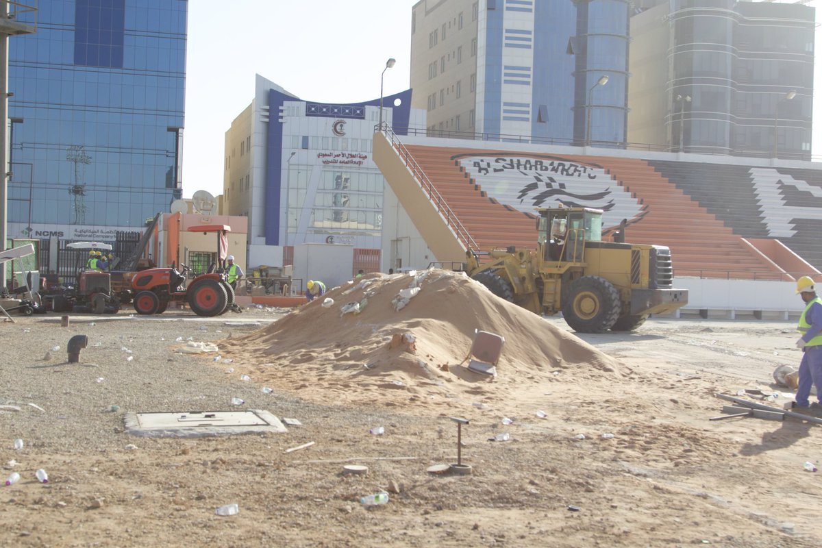 بداية الاعمال في مدرجات #ملعب_نادي_الشباب