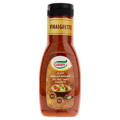 ملح، ليمون، زيت زيتون، خل، ثوم، ومتبل الطماطم المجففة من قودي