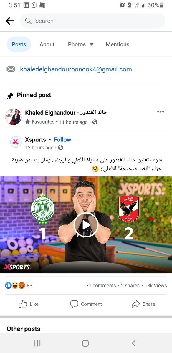 مرفق مع تلك التغريدات صورة عن المنشورات المتكررة باستمرار حيث ان لاعب #الزمالك السابق #خالد_الغندور اهتم بالحالة التحكيمية اكثر من فوز ناديه بلقب #دورى #الكرة_الطائرة واخذ يفرد لها مساحات زادت من غضب الاخوة المغاربه قبل استقبالهم مباراة #الاهلي_الرجاء فى #الدار_البيضاء