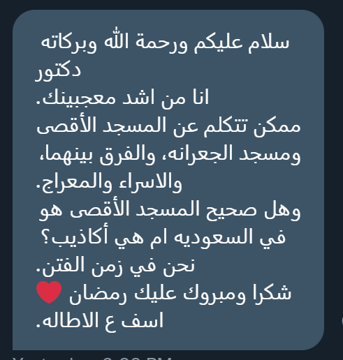نص صريح أن المسجد كان في القدس، ولو كان في الجعرانة قرب مكة لما كذبته قريش ولما استغربوا الأمر!