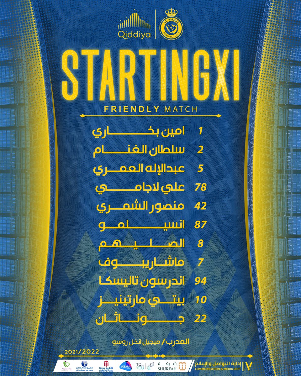 📄 | قائمة الفريق الأساسية في مباراة #النصر_الاتفاق الودية