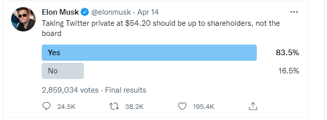 السبب: مناورة Poison Pill التي تبنتها تويتر لإحباط محاولة استحواذ ايلون ماسك عليه!