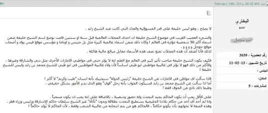 الآن، لنرى رأي أعضاء منتدى الحوار الإماراتي في كفائة الشيخ خليفة بن زايد.