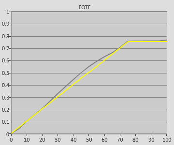 الدقيقة 1:32:00 اشار Classy لفروقات EOTF قبل وبعد المعايرة لل EOTF ويظهر ال EOTF جيد الى حد ما بعد التعديل قريب