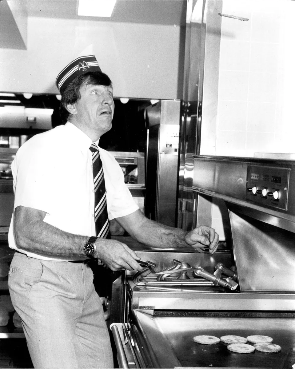 احتفل رون كوتيه ، لاعب دوري الرجبي السابق ، بافتتاح مطعم ماكدونالدز الخاص به عن طريق تقليب البرغر