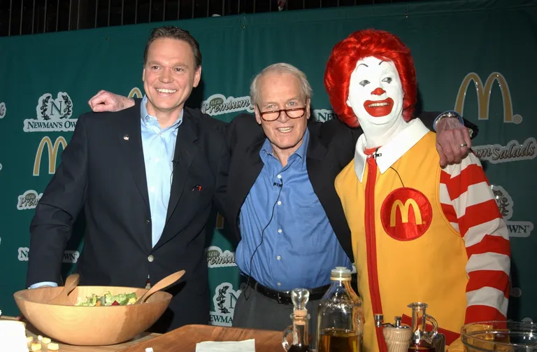 تم الضغط على ماكدونالدز لتقديم خيارات قائمة صحية أكثر في عام 2003. فماذا فعلوا؟ إطلاق السلطات الرئيسية التي تقدم مع صلصة سلطة بول نيومان الشعبية. هنا ، يحتفل الممثل بالإطلاق جنبًا إلى جنب مع رونالد ماكدونالدز ومدير تنفيذي من ماكدونالدز في تايمز سكوير