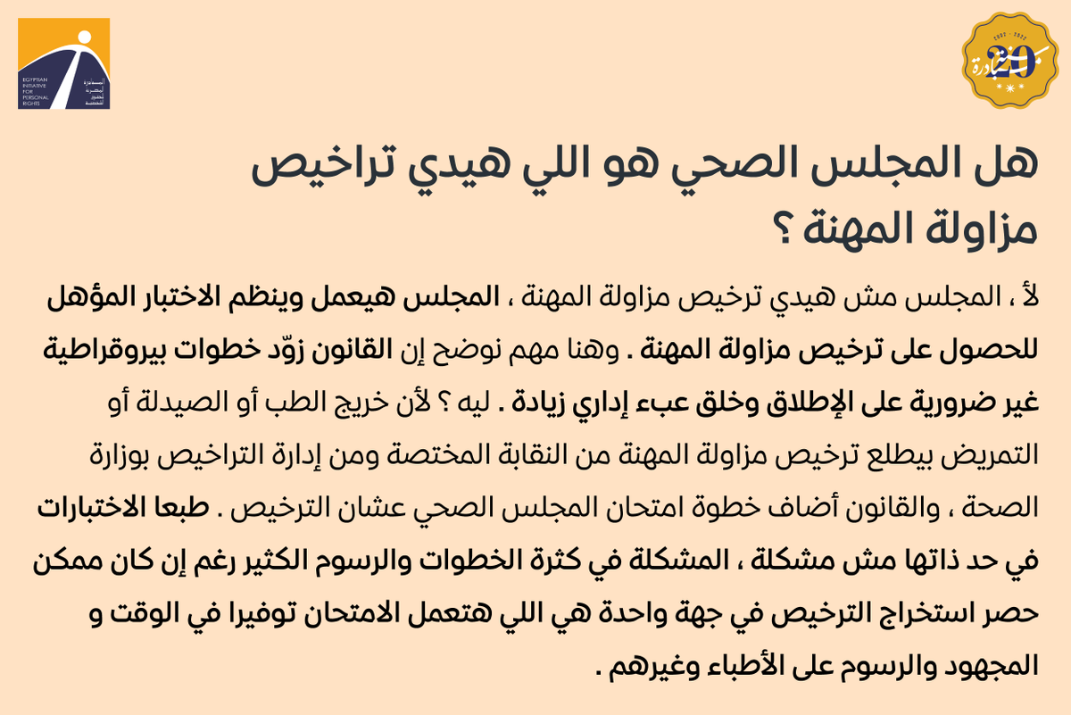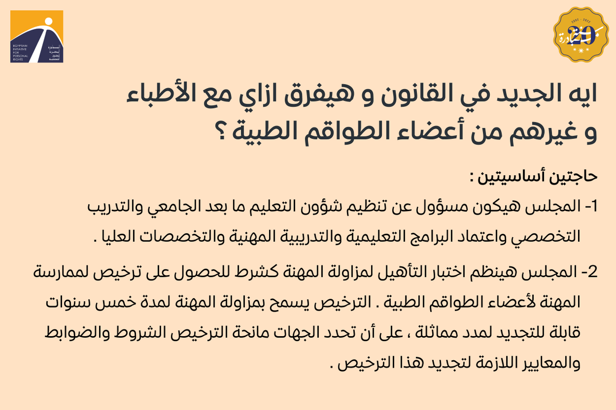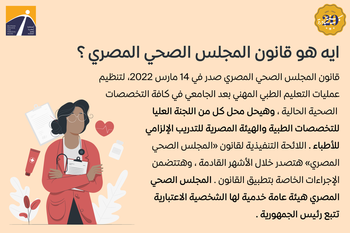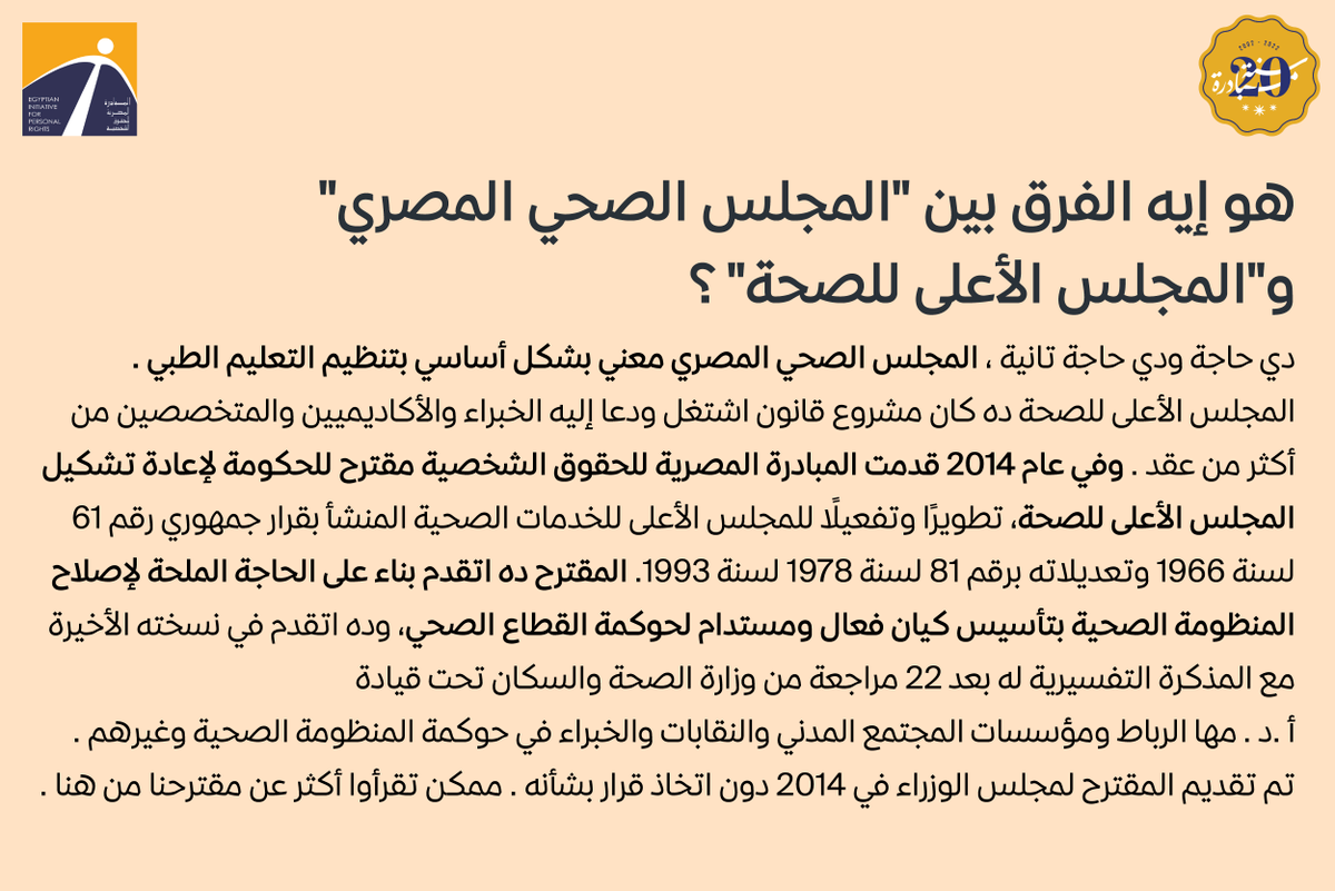 🔹 من شهر اتوافق على قانون جديد اسمه قانون #المجلس_الصحي_المصري. المجلس لسه ما بدأش عمله لأن اللائحة التنفيذية للقانون لسه هتطلع في الشهور القادمة