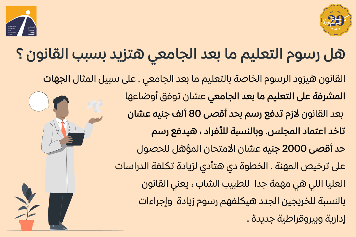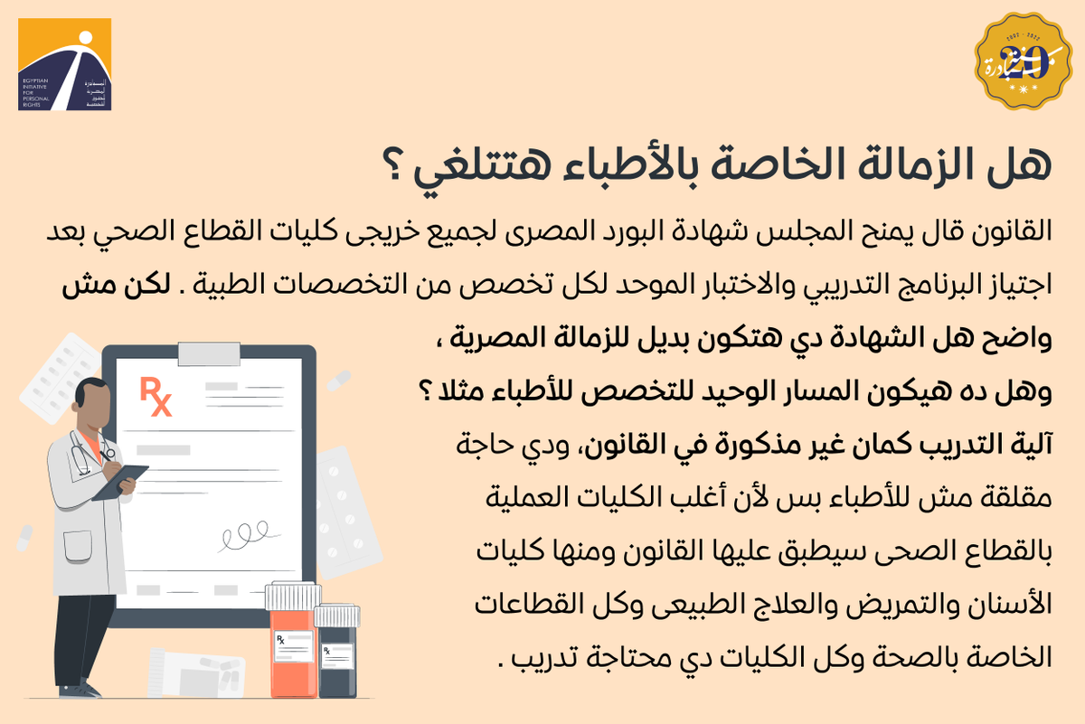 🔹 هنا سين و جيم لشرح القانون، وتوضيح النقاط المثيرة للجدل زي امتحان ترخيص مزاولة المهنة ومصير زمالة الأطباء، وتأثير القانون بشكل عام على التعليم الطبي.
