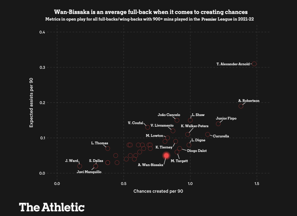 فـ ماغواير يُعاني ضد الأجنحة المهارية، فاران حذر أكثر من اللازم بالكرة، ليندلوف يعاني عند دخوله في صراعات هوائية مع مهاجمين بدنيين، وبايي متسرع في قراراته. وبيساكا لديه مشاكل تموضعية