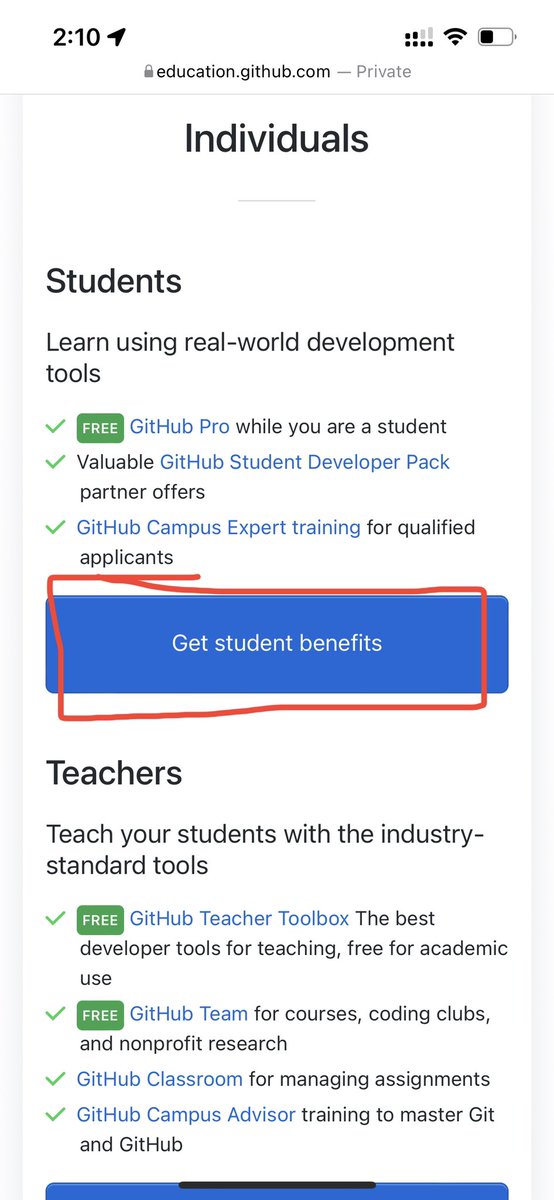 ١- GitHub مسويه حركة مره رهيبة ، وهي أنك تنشئ فيه حساب طالب بخطوات مره بسيطة ، ومن خلال هالحساب تقدر تحصل على الخصومات والعروض للشركات الي متعاقده مع GitHub.