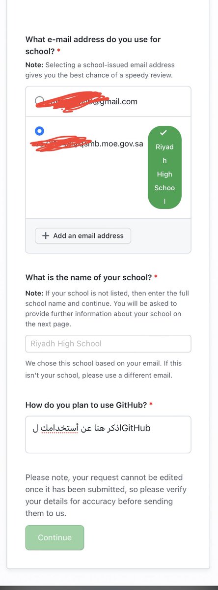 - أدخل الرابط education.github.com وحط Sign up for Student Developer Pack