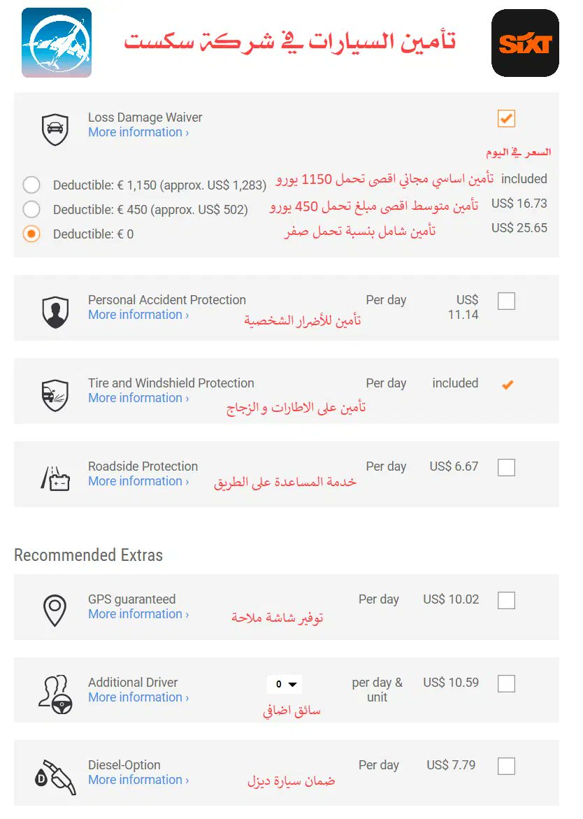 -سيتم تخفيض قيمة الوديعة اذا قمت بشراء تأمين شامل و تأمين على الوقود و الاطارات