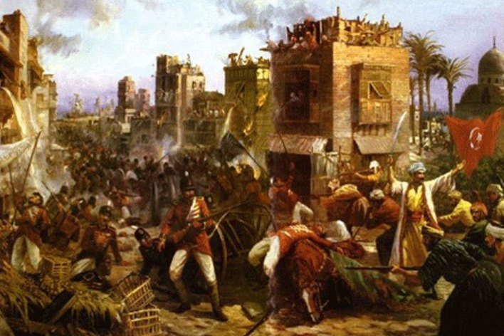 والحجارة وفي ساعات قليلة زاد أعداد الثوار وعمت الثورة أنحاء القاهرة في الشوارع والميادين والأسطح حتى بلغ عددهم 50ألف ثائر حاملين البنادق والأسلحة والعصى واندفعوا تتقدمهم طائفة من المماليك والانكشارية وانضم إليها النساء والأطفال فكانت لهم نداءات وصيحات تصم الآذان 👇11