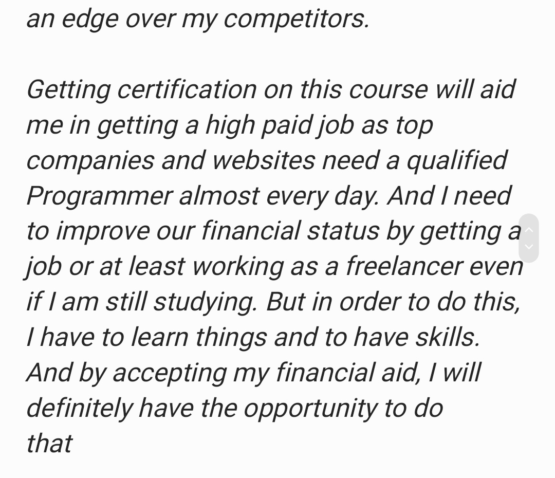 مثال لشخص يريد التقديم على منحة لدورة تعليمية في البرمجة👨💻: