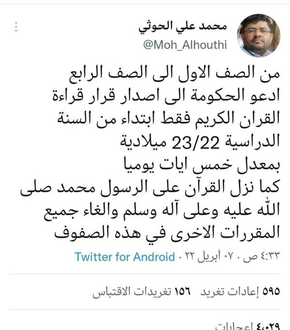 طبعا بدأ الحوثي يرسل اشارات تمهيديه لهوامير العملات في عدن وحضرموت بتغريدة نشرت بتاريخ 3 ابريل 2022